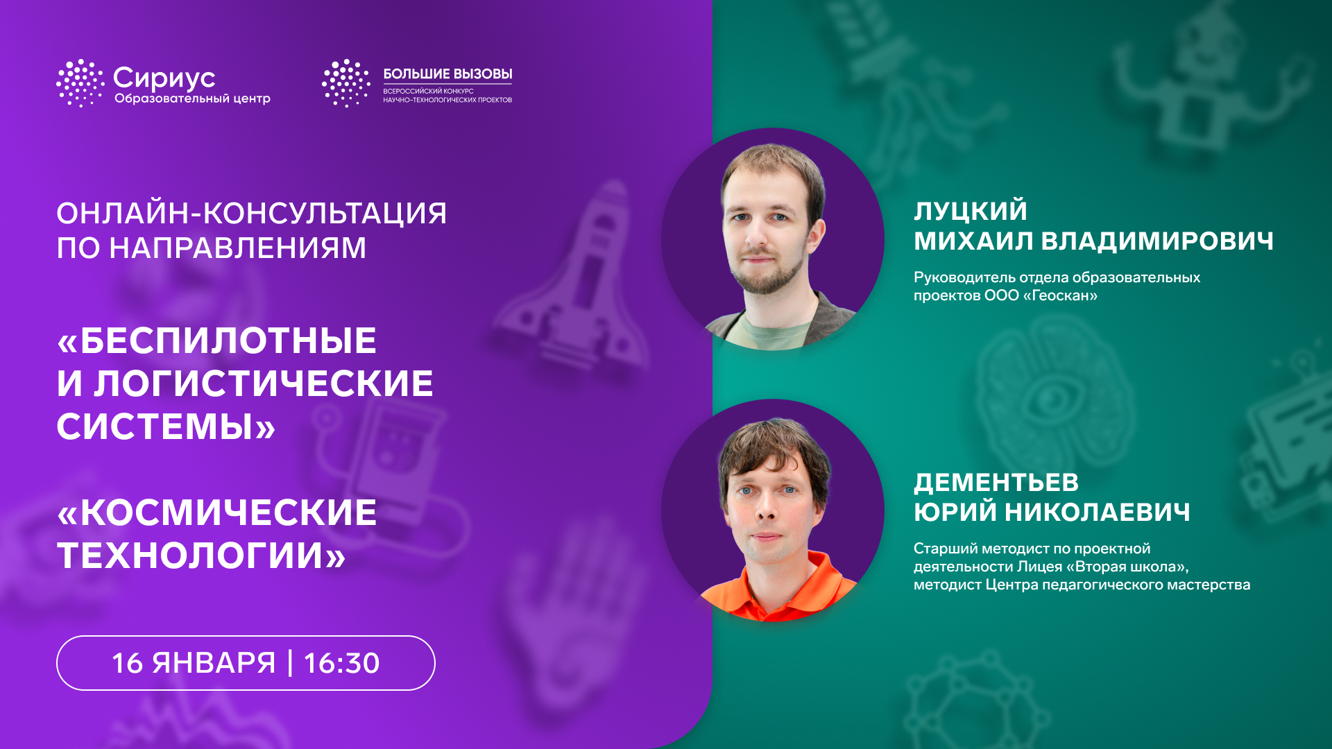 - 16 января 16:30 — «Беспилотные и логистические системы», «Космические технологии»: https://vkvideo.ru/video-148377005_456239112