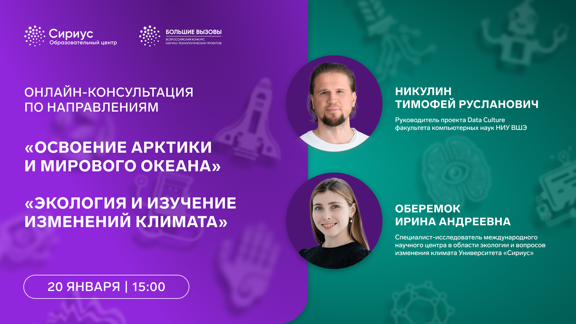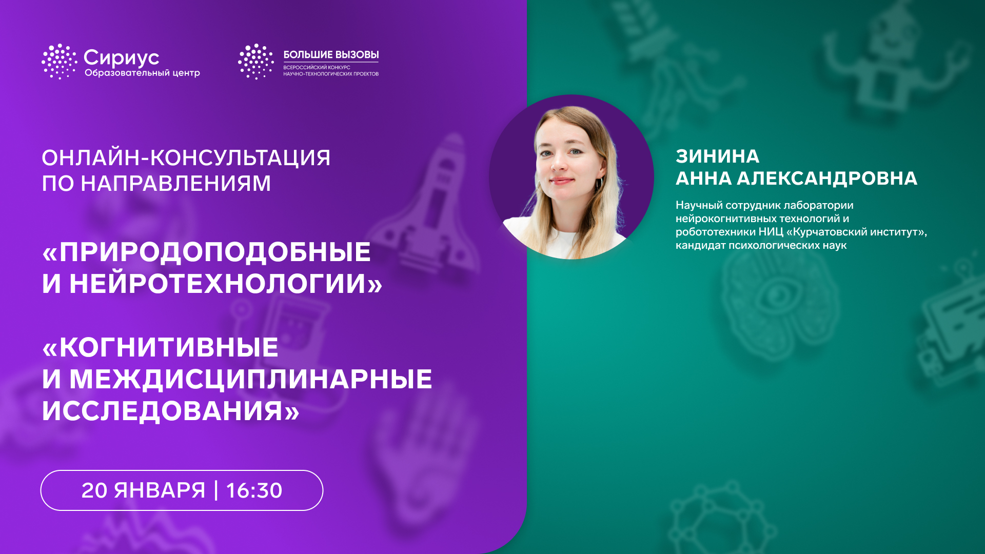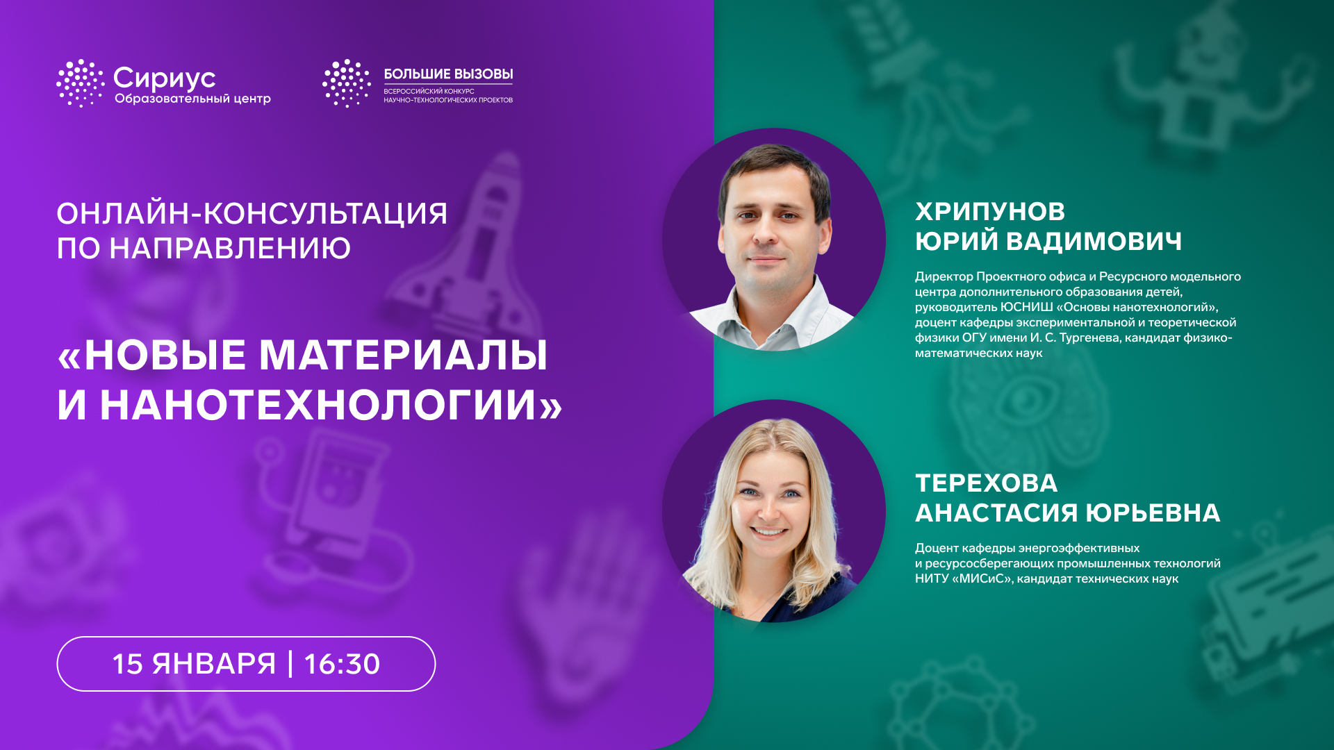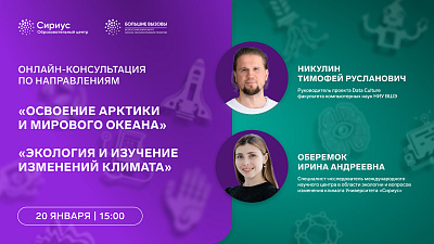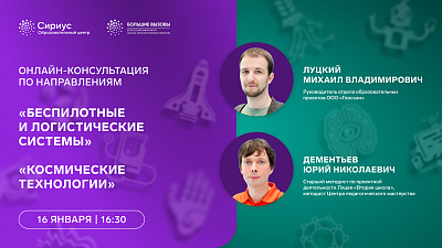 Образовательный центр «Сириус» с 15 по 20 января 2025 года проводит цикл онлайн-консультаций в рамках проведения Всероссийского конкурса научно-технологический проектов «Большие вызовы». К просмотру приглашаются все желающие узнать больше о конкурсе и проектной деятельности, а также учителя, наставники и родители.