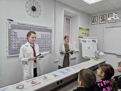 А пока старшеклассники защищали свои задачи перед компетентным жюри, для младших школьников (3-7 классы) была организована «Химическая ярмарка». Ее посетили более 20 школьников из МБОУ «Сновицкая СОШ» Суздальского района и города Коврова. Для будущих химиков были организованы станции, где ребята смогли углубленно познакомиться с такой удивительной наукой, как химия: «Семейно-профессиональная», «Поисково-элементарная», «Вещества – угадательная», «Оборудование – узнавательная», «Экспериментальная» и «Технически безопасная».