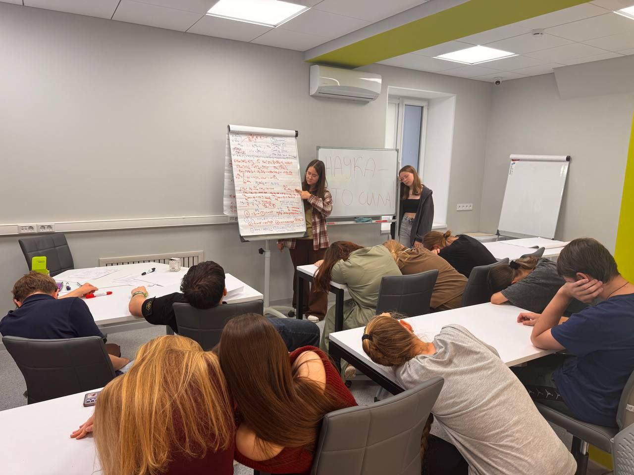 Меня зовут Маша Харчилава, Я из Гусь-Хрустального. Я оказалась на смене по профилю «Химия». На сегодняшней лекции с Сергеем Анатольевичем Серяковым мы отработали пройденную тему, а так же узнали много новой информации. Нам всем очень нравится приходить на занятия, ведь нам интересно продолжать знакомиться с этой наукой. Во второй половине дня мы посмотрели фильм «Цирк». После этого мы перешли к активностям. Сегодня мы все приняли участие в увлекательных фотоквизах. У всех ребят получились очень интересные фотографии. Нам очень понравился сегодняшний день. Всем спасибо.