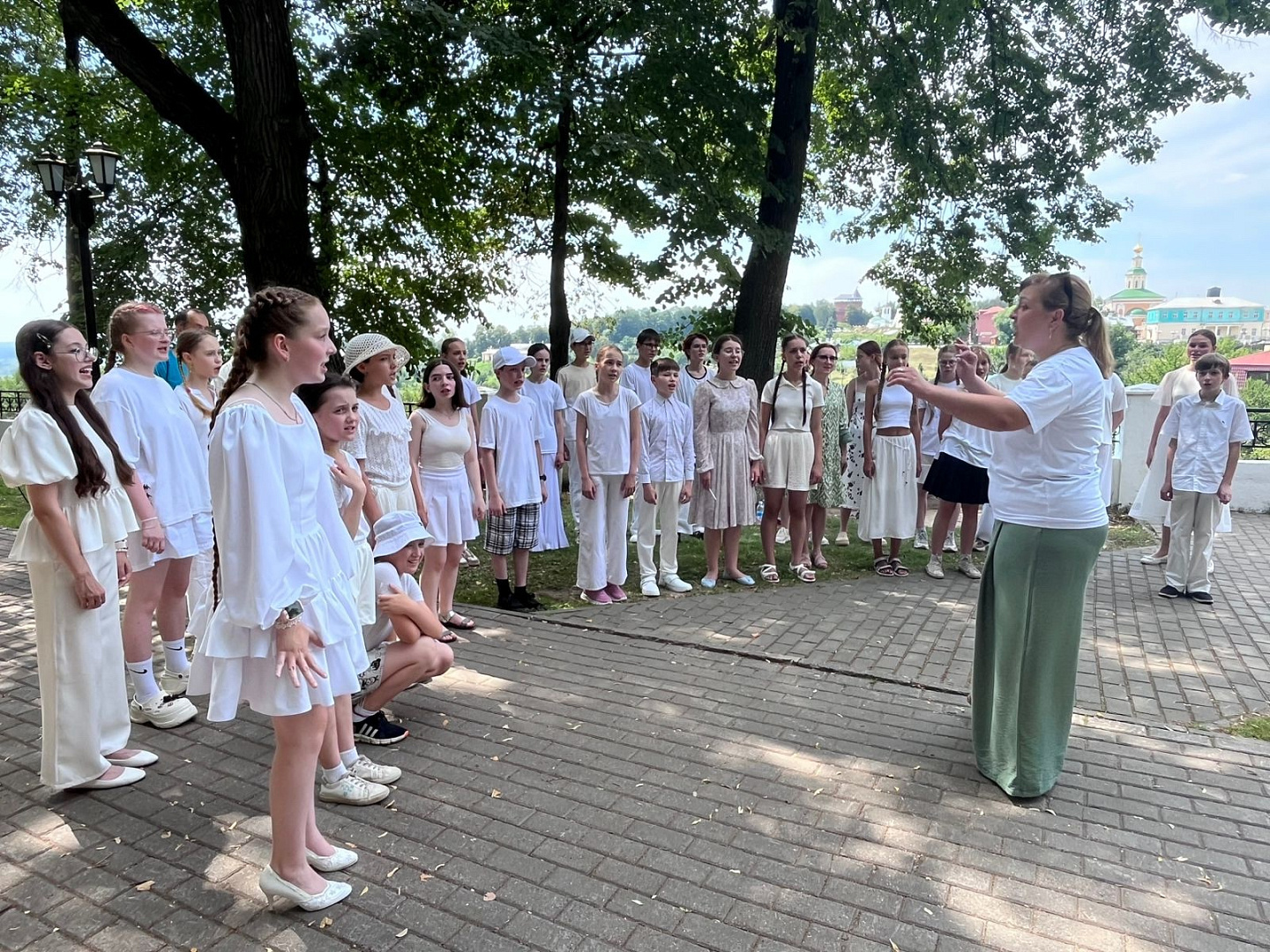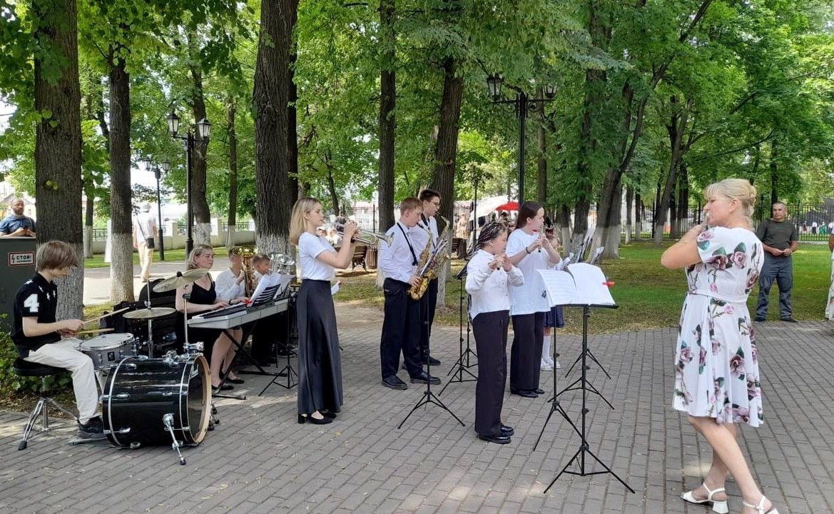 А 12 июля наши участники творческой смены выступили на фестивале большой семьи «Секрет семейного счастья» в память благоверного князя Всеволода III Юрьевича Большое Гнездо. В сквере имени А.С. Пушкина юные хористы и духовики представили свою программу для жителей и гостей города Владимира. Выступление в сквере стало генеральной репетицией перед Гала-концертом на закрытие смены.