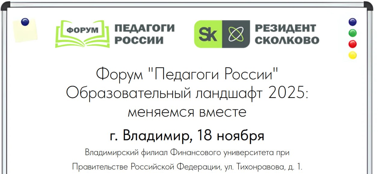 18 ноября 2025 года на базе Владимирского филиала Финансового университета при Правительстве Российской Федерации состоялся форум «Педагоги России: инновации в образовании», в котором приняли участие педагогические работники дошкольных и общеобразовательных организаций Владимирской области.