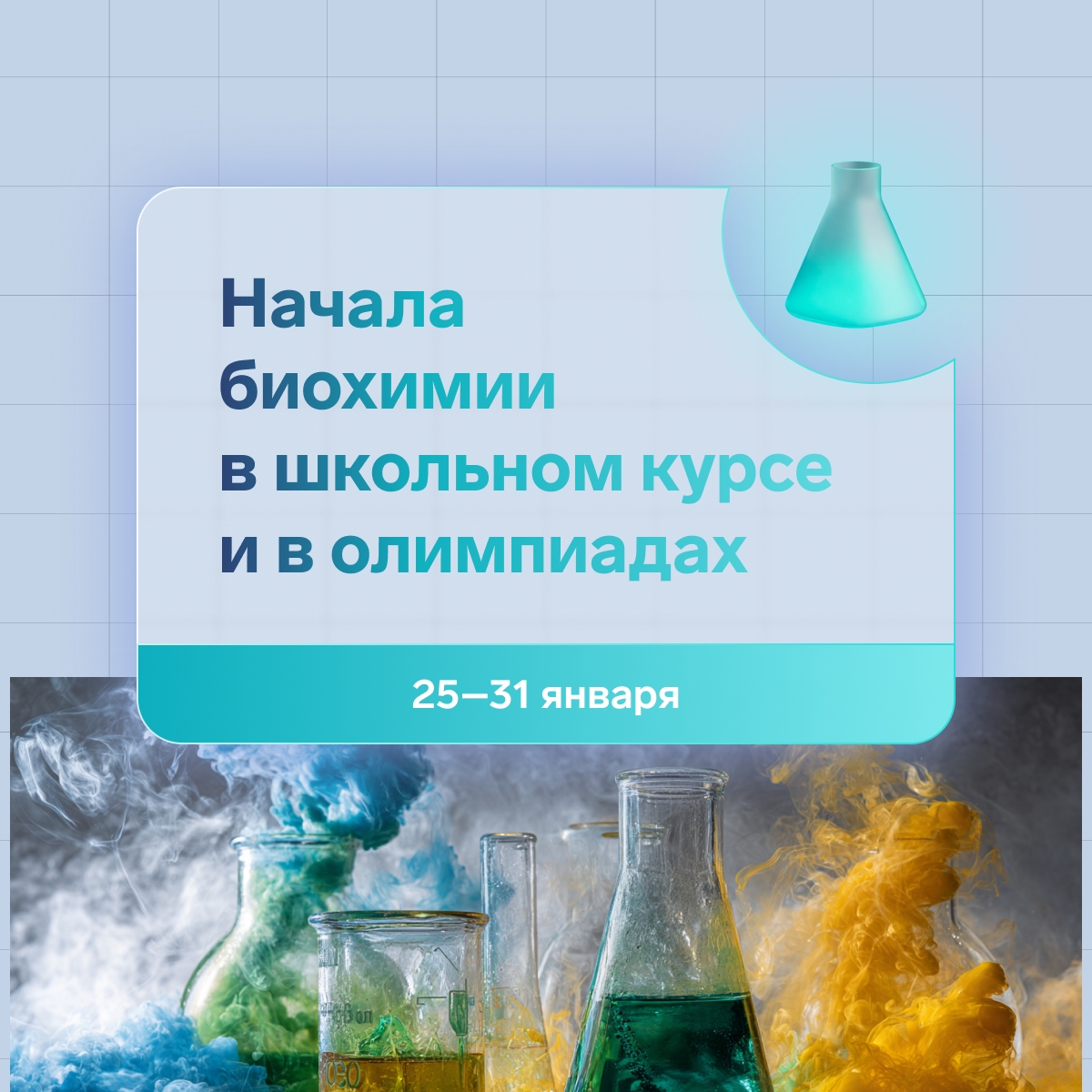 С 25 по 31 января в Образовательном центре "Сириус" пройдёт новая программа повышения квалификации «Начала биохимии в школьном курсе и в олимпиадах»
