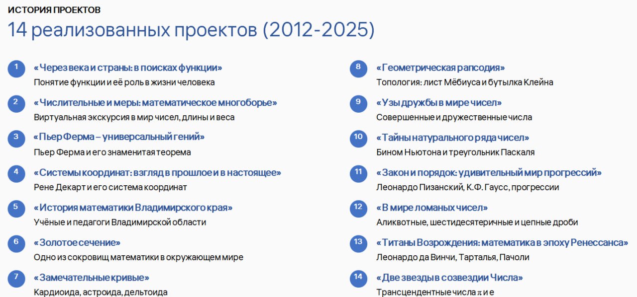 Был представлен 15-летний опыт совместной разработки и реализации сетевых проектов по математике. За прошедшее время в сетевых проектах приняли участие более чем 3 000 школьников из всех муниципальных образований Владимирской области, Белгородской и Саратовской областей, Кыргызской Республики и Республики Таджикистан.